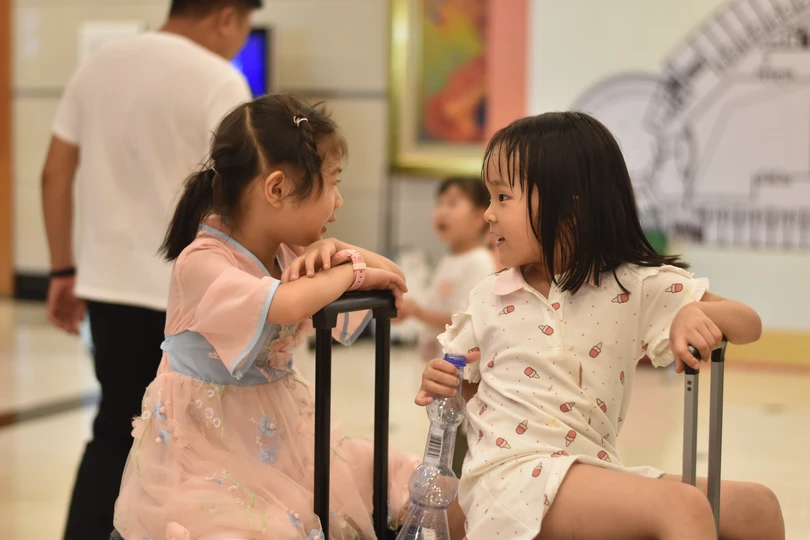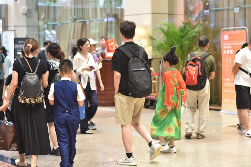 感觉现在的小孩子是越来越卷。 扫街的时候路过 #上海国际会议中心 ,也碰巧这里举办了一场针对小朋友的什么语言大赛(看着像是是朗诵比赛)。光看服装就感觉到家长和孩子们对待比赛的各种用心程度。有的小朋友甚至连汉元素都穿上了,还有的穿其他民族的服饰。还有的连礼服都穿上了(虽然下面有的穿的是旅游鞋,有的穿的是拖鞋)。更何况,里面的孩子在比赛,外面的家长更加焦虑,生怕孩子们的简历表不出彩…… 拍摄时间:2024-08-03