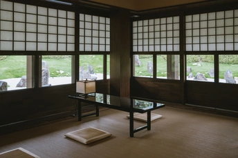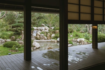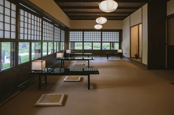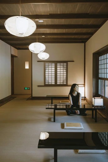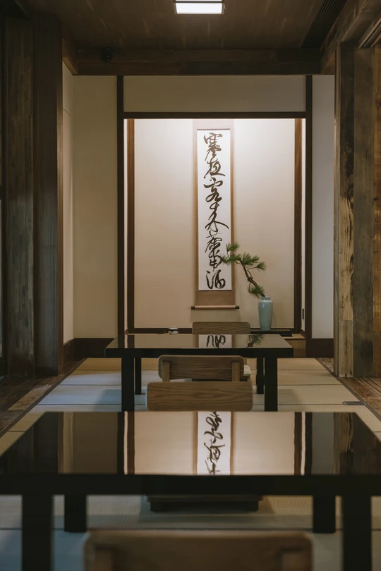阿那亚·雾灵山 二期 禅意 庭院 阅读 书籍 在阿那亚·雾灵山的次日,正好赶上见山本院开启试运营,抽时间去看了看。 东方传统古建风格与整体周围环境关系融洽,使用大量木质结构混合了东亚各文化中古建筑的尺度,结合庭院的园林景观设计,给人一种安静、舒适、放松的感觉。 空间内部利用杆件和板片,形成了空间的限定与围合。景观庭院和室内空间的相互影响和传递,可以让人们靠窗席地而坐,安静的看会书、写幅字、下盘棋,抬头再看窗外的绿色,对眼睛也是放松的。并且开洞和屏风对景观也有限定,就好像取景器里看世界一样,不同位置不同角度。