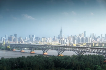 一张雾霾天的长江大桥与城市天际线翻车照,索性通过后期营造一种迷雾感,稍微拯救一下废片