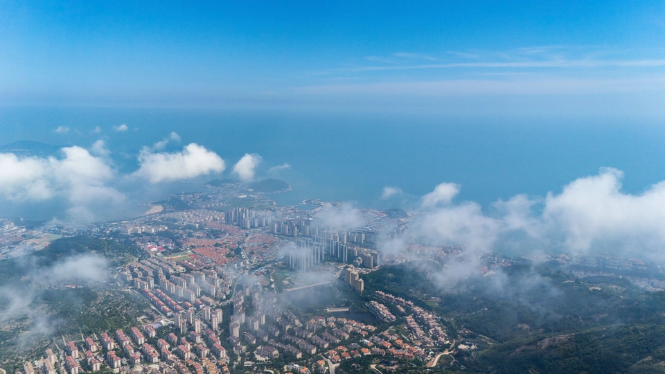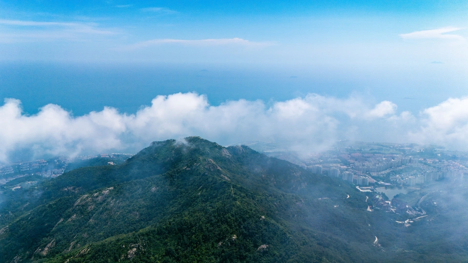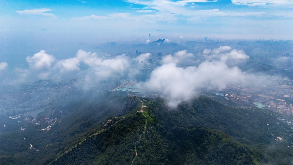 在这片如梦如幻的云海之上,青岛的山脉和城市若隐若现,仿佛在演奏一首大自然与现代文明交织的交响曲。蓝天白云下的群山与现代建筑完美融合,带来了一种与世隔绝的宁静感。远处连绵的山脉和俯瞰的城市景象让人瞬间忘却喧嚣,仿佛找到了心灵的栖息地。青岛的美,不仅在于它的现代化,更在于它与自然的无缝连接。站在高处,俯瞰这片土地,你会发现每一座山、每一条路、每一片云都在诉说着这座城市独特的故事。