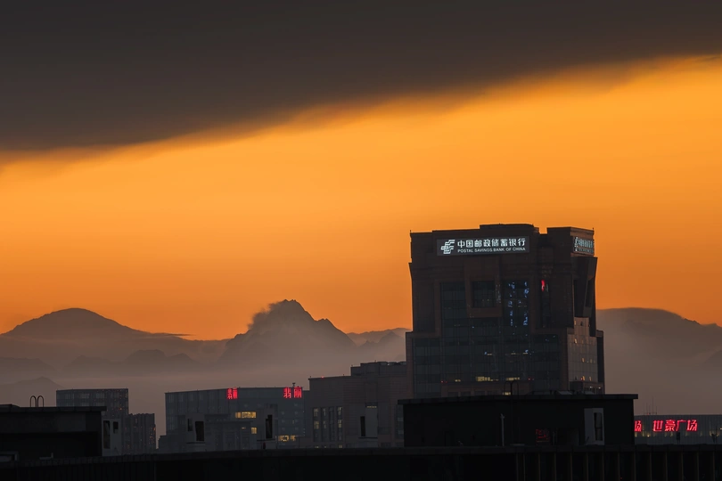 7月底成都的一场晚霞,在家楼顶拍到了丁达尔、幺妹峰的剪影,长焦下甚至能看到幺妹峰雪和山体的细节