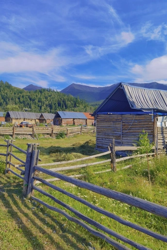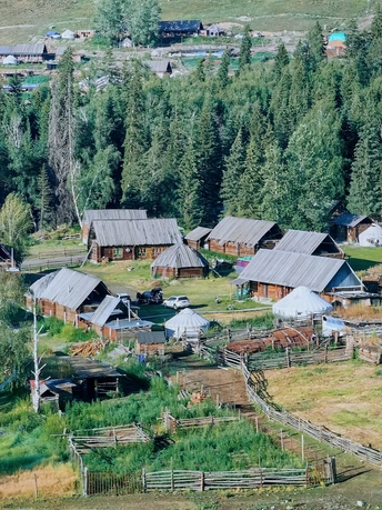 白哈巴是个原始自然生态与古老传统文化共融的村落,位于阿尔泰山脉的山谷平地上,与哈萨克斯坦的大山遥遥相望,一切都还保存着几百年来固有的原始风貌。被中国地理杂志评为“中国最美的古村古镇之一”。