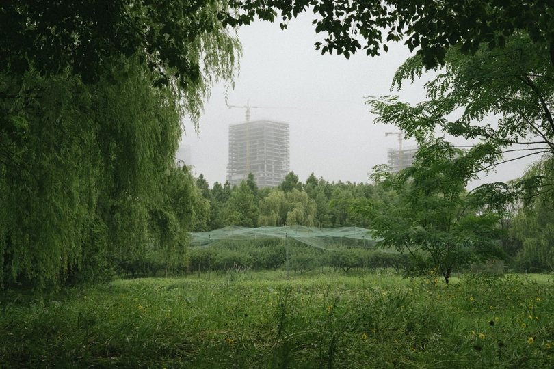 这片绿地里的果树即将收获,这也是最后一季的收获,不远之处的高楼即将延伸到这里。