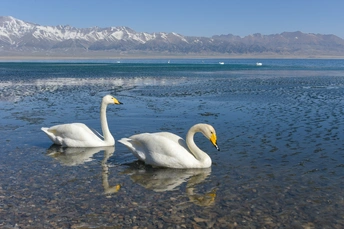 赛里木湖,犹如一颗璀璨的明珠镶嵌在新疆大地。湖中天鹅优雅游弋,它们洁白如雪,身姿婀娜,在清澈湛蓝的湖水中嬉戏。修长的脖颈弯曲成优美的弧度,时而振翅高飞,时而悠然凫水。赛里木湖的天鹅,是大自然的精灵,为这片美丽的湖泊增添了无限生机与魅力,令人陶醉不已。 七夕佳节,繁星璀璨,银河迢迢。传说中牛郎织女相会于此夜,让这一天充满浪漫与神秘。 看那优雅的天鹅,它们夫妻相伴,矢志不渝。一生一世一双鹅,从青春结伴到岁月白头,风雨同舟,不离不弃。 愿世间有情人,都能如天鹅般忠诚相守。在这个七夕,让爱绽放,岁月温柔以待,相伴岁岁年年。 祝大家七夕快乐,爱情永恒!