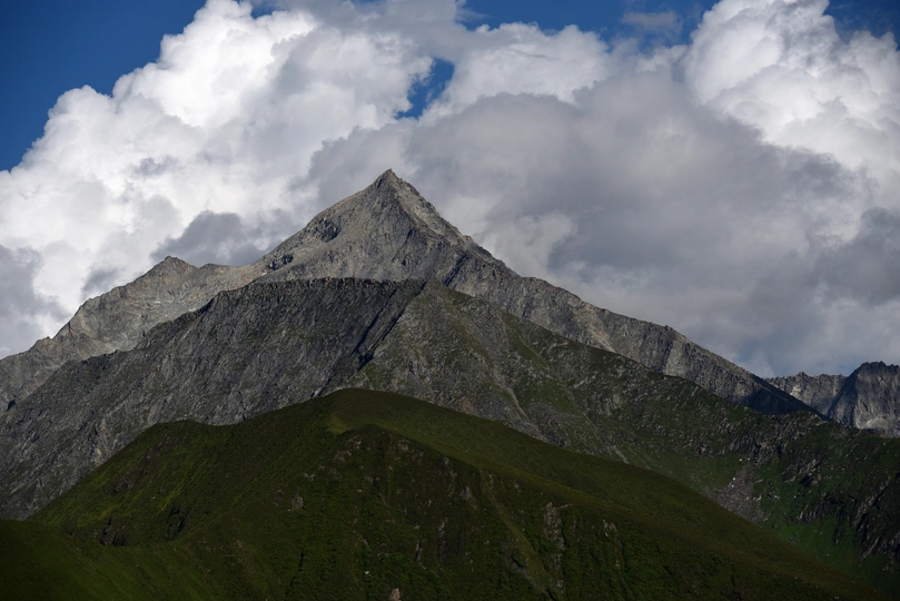 羌山之王-小雪隆包(雪龙岭),位于青藏高原东缘,是阿坝州理县和汶川县的界山,海拔高达5314米,独踞一方,巍峨壮观,是藏羌文化走廊上的重要地标。 小雪隆包是依山或傍水(杂谷脑河、岷江)而居的羌族人民心中的神山,羌族古老神话认为,羌人是天神的外孙子民,女娲视木吉卓及其祭师阿巴木拉来自上天,他们凭借高耸入云、白雪皑皑的雪隆包来到凡间。