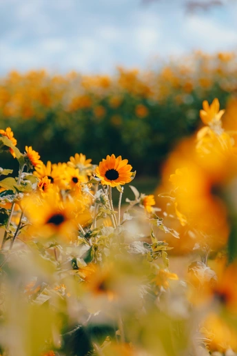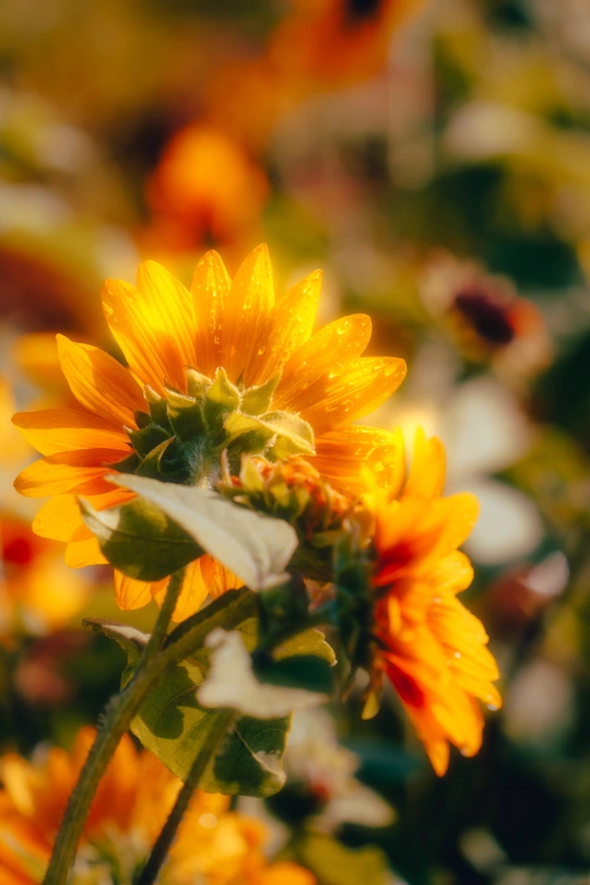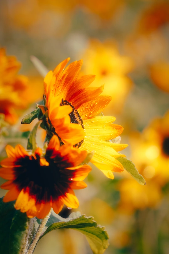 雨后葵园的璀璨时光 雨后天晴,向日葵上闪烁着发光的露水,温暖的阳光倾洒而下,景色非常美丽