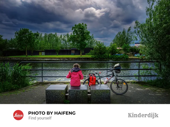 一个女学生在暴风雨即将来临时,并不着急赶路,而是停下来欣赏着雨中田园的景色。