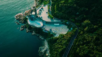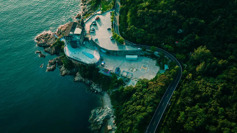 在半月湾看完日出,走在去猫头山的路上,飞起无人机看到很美的画面!
