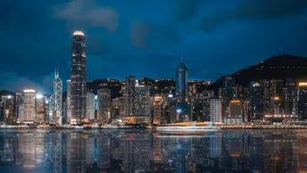 香港的维多利亚港在夜晚展现出令人惊叹的繁华与现代 闪烁的灯光与静谧的水面交相辉映 勾勒出一幅别具风情的城市夜景画卷