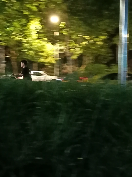 石家庄的蜂巢那块儿有个草坪,草长得特别旺盛,草坪上还有一个像蒲公英一样的杆子,当时我趴在草坪前面儿正好能看到对面的大街,就随手拍了一张,里面儿的年轻人像是在草坪上骑电动车一样,而且那街边的路灯就像太阳一样(~~~分不清是路灯还是太阳~~~),感觉挺有内涵