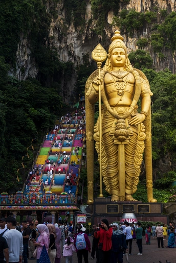 吉隆坡黑风洞是印度教圣地,感受到了不同的文化氛围,也看到了虔诚的信徒们,赤脚走在彩虹楼梯上
