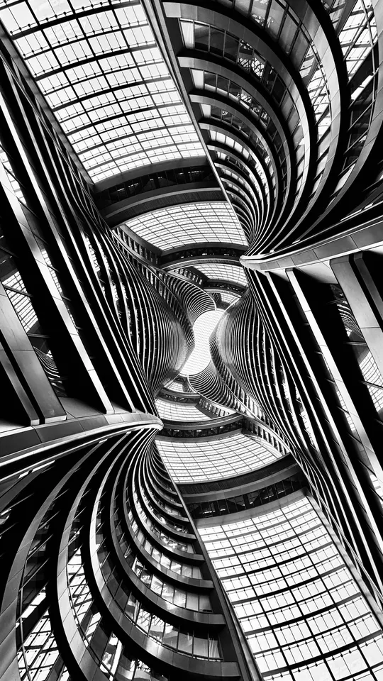丽泽 SOHO由世界著名建筑师扎哈·哈迪德设计, 为 49 层超高层异型建筑, 拥有世界最高中庭,高度达 200 米左右,连接了大楼内的所有空间,为使用者提供了不同的视野,大楼上每层楼的中央部分都可以通过通透的中庭享受自然光。