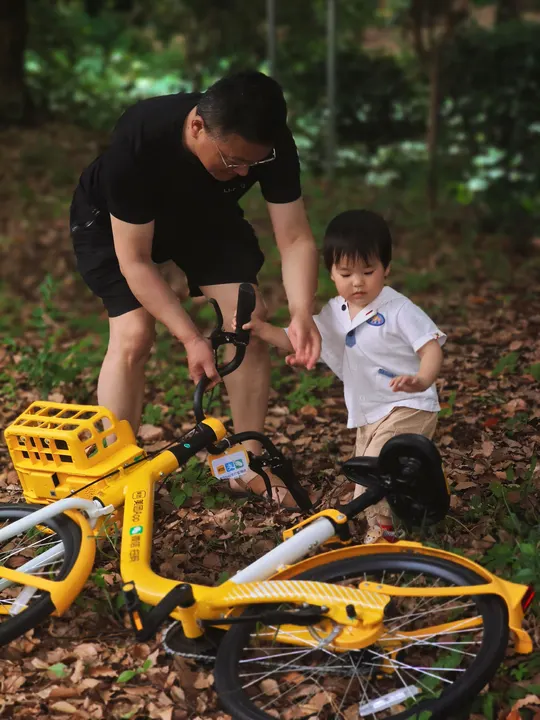 带着刚两周岁还不怎么会说话的外孙去公园玩,外公抱着娃往回走的路上,娃用手指着小树林,说着“倒”,顺着手指的方向,看见一辆自行车倒在树林里,外公和娃一起走过去,把自行车扶了起来,外孙向自行车挥挥手,说着“拜拜”,才安心离开!