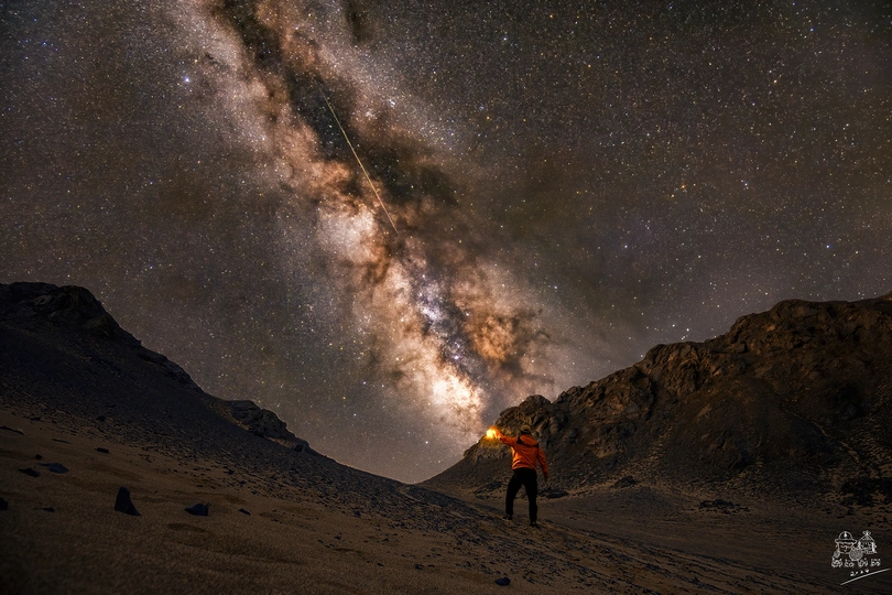从敦煌一路开车跑去黑独山,就为了拍一夜的星空。傍晚时分赶到黑独山,边航拍边探索机位,也不抱希望能够找到胭脂山了。等到太阳完全落下后,赶紧背着大包逆着人群的方向,往大山深处走去,看着不远,但走着走着天就完全暗下来了,身上也被汗水浸透了。找了个南边是山的机位,把三台相机全部架好,开始拍延时后,就赶紧离开了。湿透的衣服被风一吹,有一种凉意透骨的感觉,让我不敢再继续守着相机。另外,原计划是三台机子找三个机位的,但独自呆在山里的恐惧和寒冷让我不得不妥协了。离开的时候,头灯照亮的空气里,细沙被风吹起,这让我担心起了我的镜头们,感觉会进沙。 后期方面,一级暗空,没有什么光污染的延时,用sequator软件进行堆栈,是张数越多堆栈出来的结果是越奇怪,让我很是不解。500张堆栈出来的简直没法看,反而50张堆栈出来的要好一点儿,只能天地连接处莫名的光亮让人很无语,都快炸了。 拍摄地点:青海省茫崖市黑独山 拍摄器械:佳能6D 焦段:16mm 银河部分:13秒曝光 50张sequator堆栈 地景部分:12张平均值堆栈+自拍单张 流星部分:1张流星蒙版擦出
