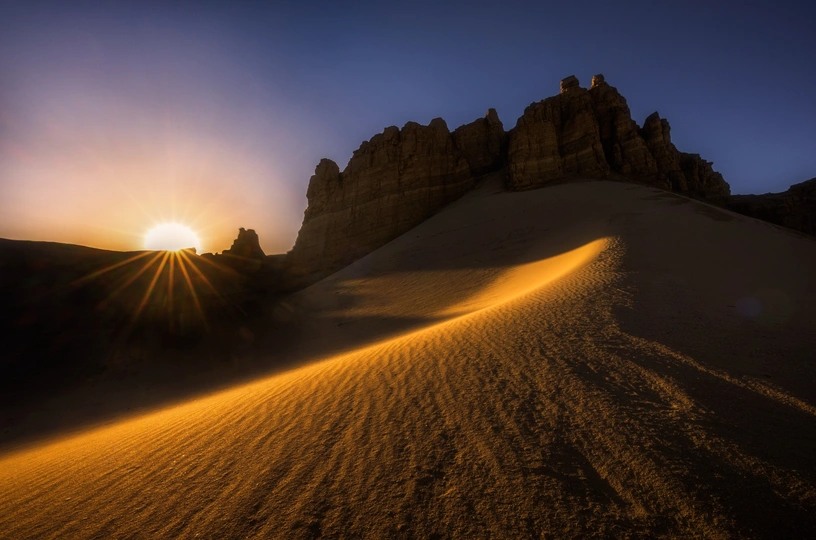 日落时分在俄博梁无人区等待那一刻的辉煌