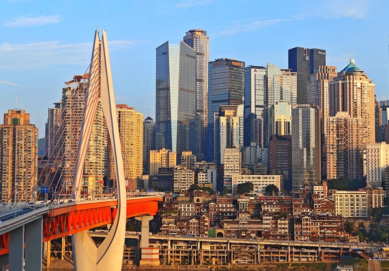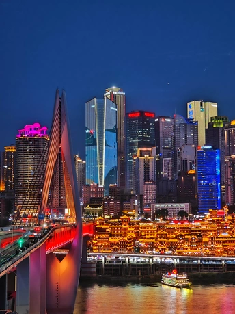 两个时段拍摄洪崖洞和千厮门大桥的景色,各具特色。