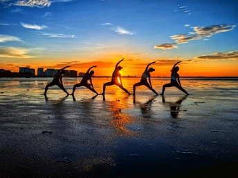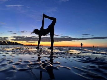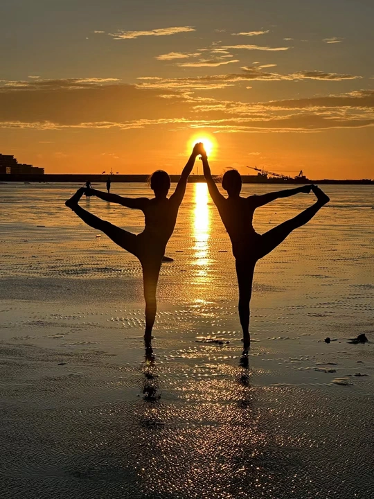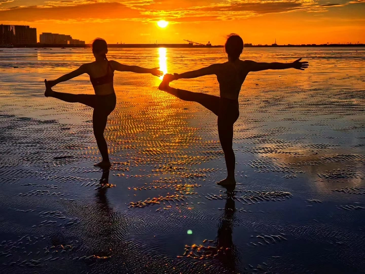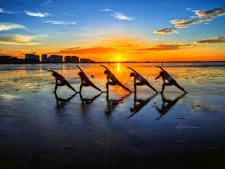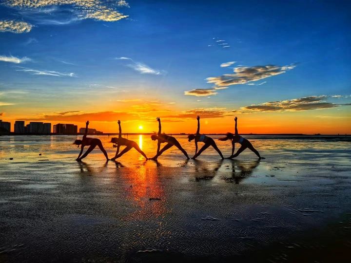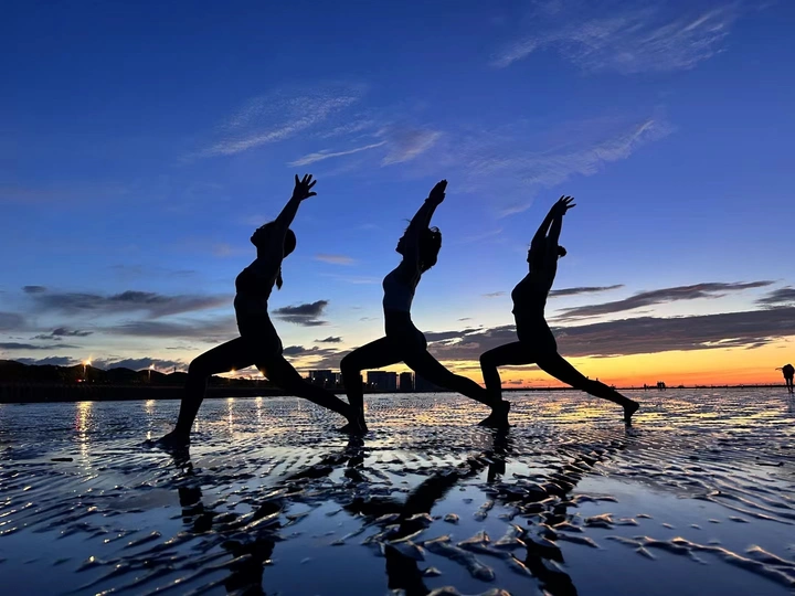 从黑夜到朝霞,遇见一群瑜伽🧘🏻♀️达人,原本过来拍日出的,结果遇见(蹭拍)不一样的日出🌅