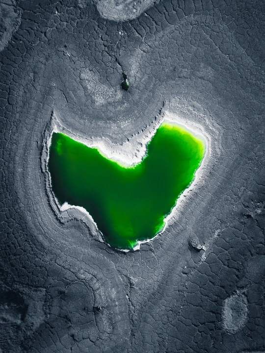 在大柴旦翡翠湖俯拍到一颗翡翠的心,一层层向外扩散