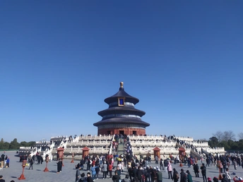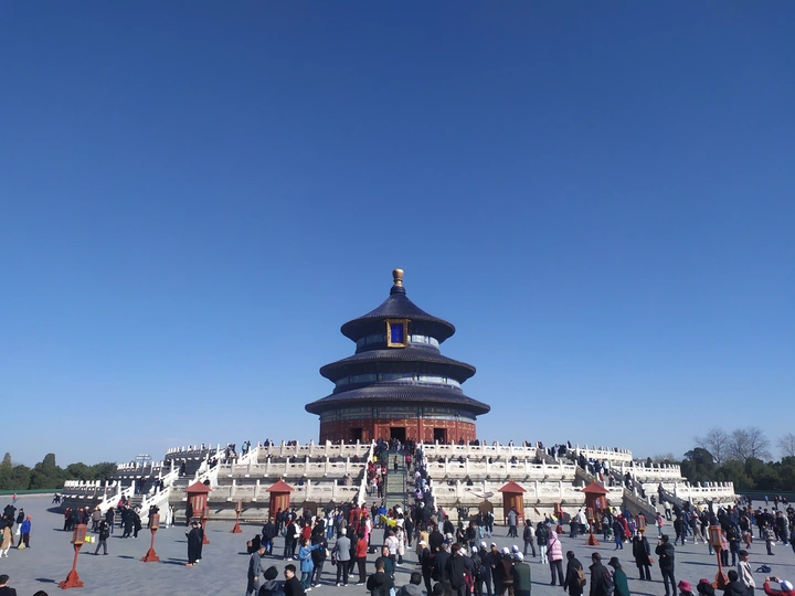 天坛祈年殿,北京的城标之一,蔚蓝的天空下显得格外庄严。