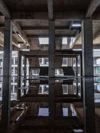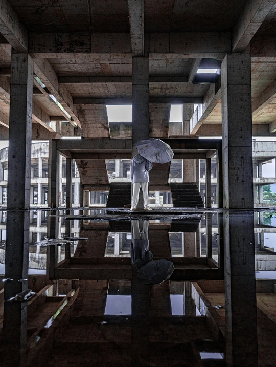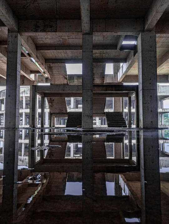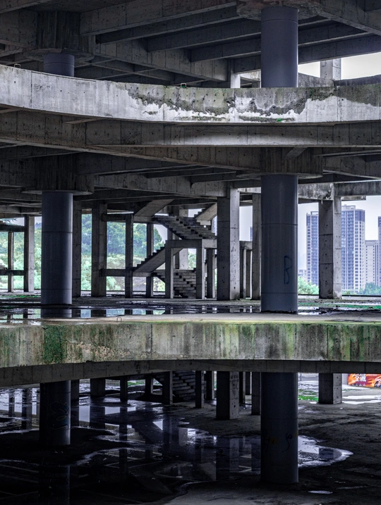 来自一名10年学生的图片,拍摄于重庆的一栋烂尾楼中,通过下了雨的滴水当做倒影,成片。