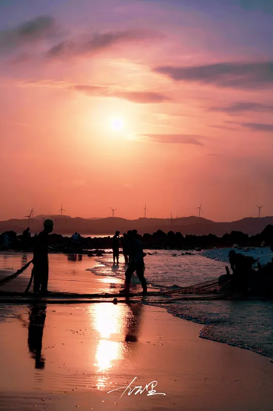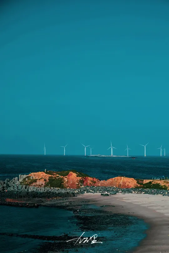 平潭岛夏日,海边风车、夕阳,太美了