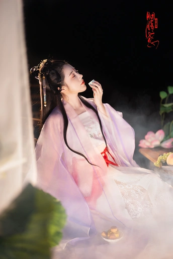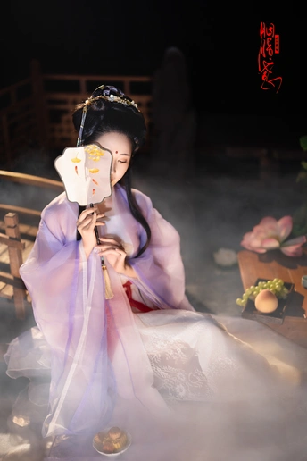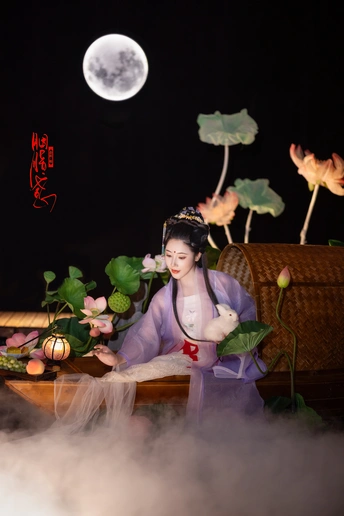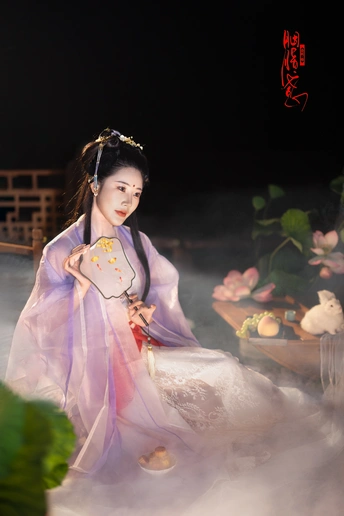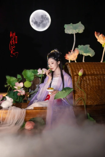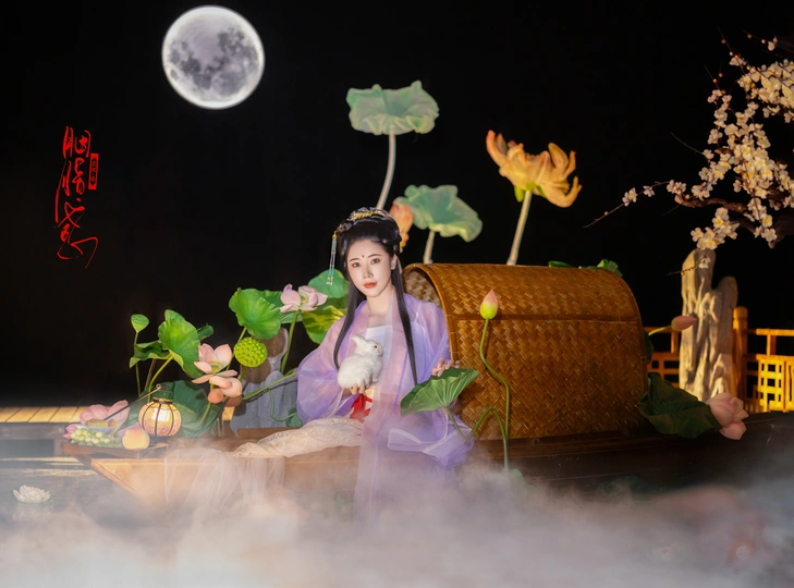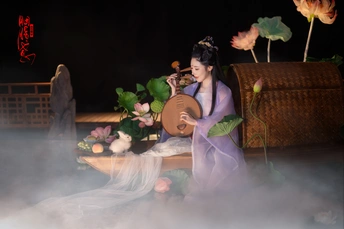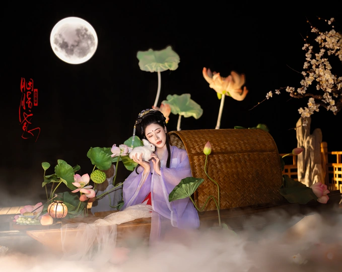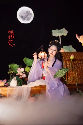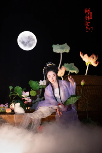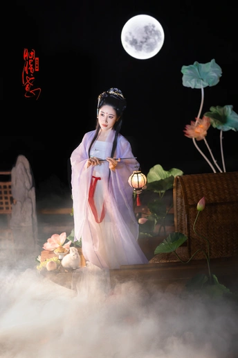魔豆:采桑子 前期、后期:电脑侠客 器材:佳能 EOS R5、RF 50 1.2L 作者随想:每逢中秋佳节,一直想拍中秋节题材的古装人像,无奈由于种种原因,近年来错过了好几次相关主题活动,今年终于逮住机会了。这次拍摄主题是室内多灯棚拍古装人像,总体布光思路是人物正面采用鳄鱼补光法,侧后方用一支暖黄灯打人物轮廓光,这样拍出来的美女人像,在光影柔美的同时,又有冷暖对比产生的立体感,属于一种非常实用的人像布光法。由于拍摄场景比较简单,补光器材和烟雾机一应俱全,所以整个外拍过程还是比较顺利的。但是当我拍完回家修图的时候,意外地发现整组片子有一个颇为致命的失误:由于拍摄现场一支地灯的摆放位置和角度出现偏差,导致人物下巴部分出现难看的阴影!一般摄友遇到这种片子会不知所措,结果就是意外翻车。幸亏鄙人的后期功力早已经是今非昔比,经过一轮技术性补救之后,采用清冷色调风格,添加了柔光和烟雾特效,最后打上古风字体模板,就有了这组仙气缭绕的古装人像片。这次经历给了鄙人一个深刻教训,多灯布光的时候马虎不得,差之毫厘,其结果就是谬以千里!切记切记!在此感谢水墨的精心组织和采桑子的敬业演出!预祝大家中秋节快乐!