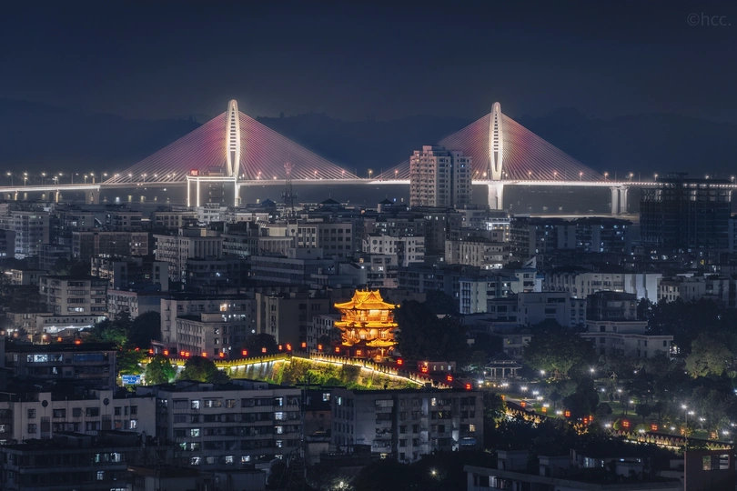 肇庆端州披云楼和阅江大桥同框,超过900年间的相遇