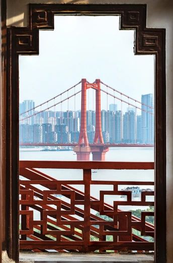 蝴蝶泉框景鹦鹉洲长江大桥