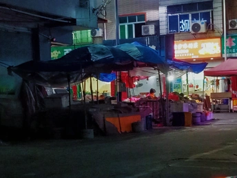 (这位阿姨,在看着西瓜,摆水果摊,没有人买西瓜其他的水果,无聊,看着手机和水果,有点生活方式)
