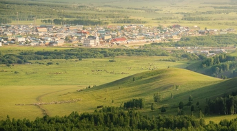 呼伦贝尔恩和-草原与森林的过度地带,落日下放牧的羊倌正望着不远的恩和乡
