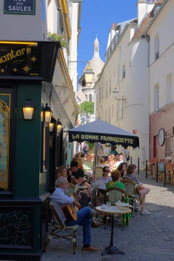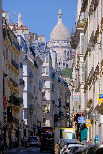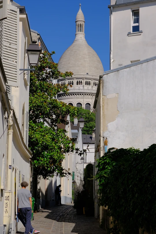 在巴黎市中心远眺蒙马特高地,最高的白色教堂便是圣心大教堂。街头艺术家的最爱。弹吉他。画画。或者就那么悠闲地坐看人间。