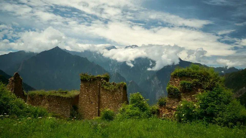 理县的山势真的狂野,到这老寨的路也崎岖险峻