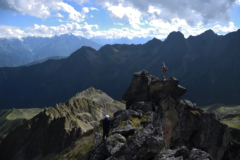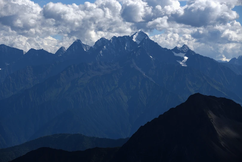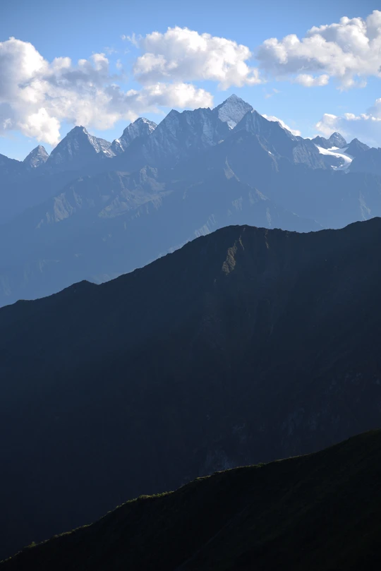 理县二盖峰,海拔4600米,站在山顶可以看到大黄峰、雪龙岭(小雪隆包)、霸王山、倒沟山、日月宝镜等雪山
