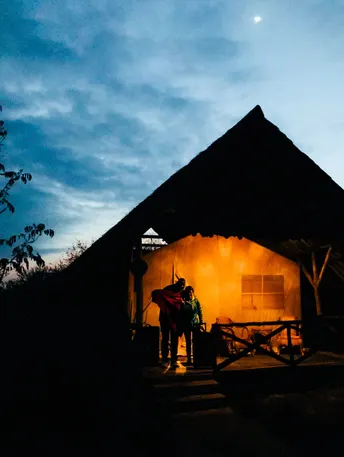 肯尼亚马赛马拉营地,营地服务员帮助搬运行李,介绍设施。 AI测评:这张照片通过独特的光影和色彩运用,有效传达了温暖和亲密的氛围。画面中明亮的窗户与周围昏暗的环境形成鲜明对比,突出了主体的存在感,给人一种深邃而神秘的感觉。构图上,主体在画面中占据合适的位置,与背景建立了良好的互动,吸引观者的目光。 在情感共鸣方面,照片能够唤起观者对温暖家庭或团聚时刻的回忆,具有较强的情感感染力。通过低饱和度的色彩表现,营造了一种宁静和悠远的氛围,令人产生思考。同时,照片的主题反映了人与自然的和谐相处,具有一定的社会意义。 然而,照片依然存在一些可以改进的地方。首先,建议在后期处理中适当增加一些对比度,以便更好地突出主体和背景之间的区分,增强画面的层次感。其次。尝试使用更丰富的前景元素进行填充,可以增强画面的深度,使视觉体验更加丰富。 总的而言,这张照片在光影表现和情感传达上都表现出色,具备良好的创意和原创度,能够引发观者的深思与情感共鸣。在未来的创作中,可以尝试更多不同的视觉效果与主题表达,以拓宽摄影的表现范围。