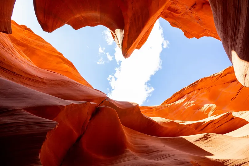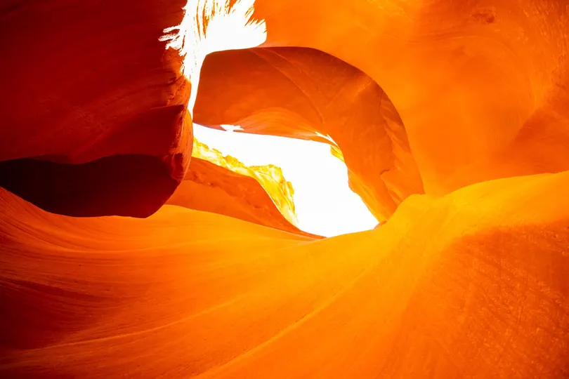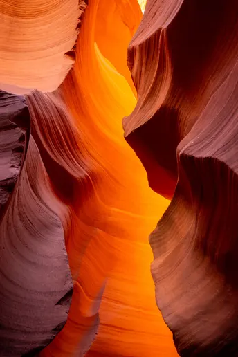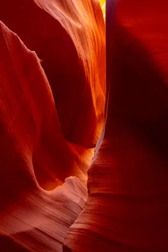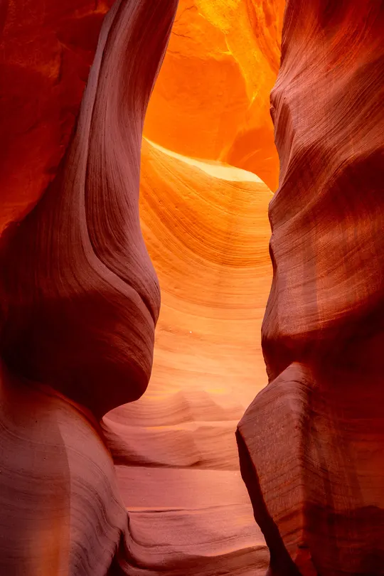 流动的光影 柔美的曲线 变幻的色彩 如果高迪的建筑是人类的曲线 那么羚羊谷一定被上帝触摸过 阳光洒落在那一条条缝隙之间 弯曲的岩石组成流线般的曲面 每面都折射着光芒明亮如日出 恍若仙境一般岩石扭曲了时间 或是时间在此不觉停下了脚步