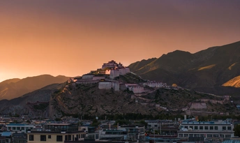 日落时分的江孜宗山古堡,天边被染成了金色,古堡也披上了金色的外衣!
