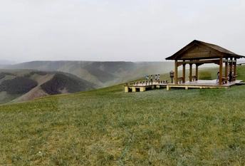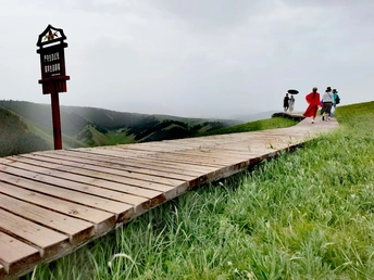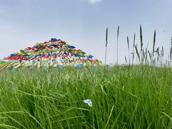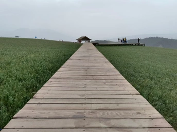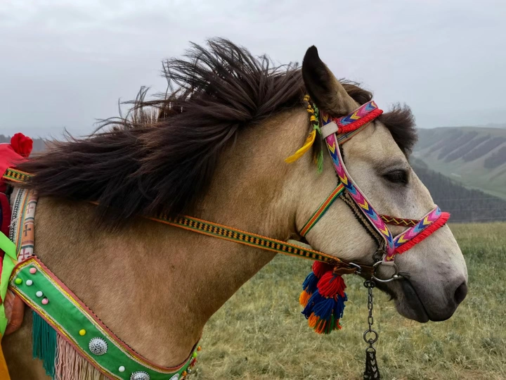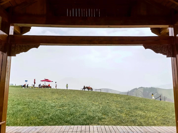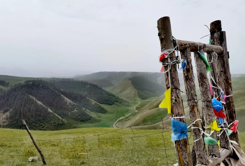 照片拍摄于河西走廊中部的张掖市康乐草原,展现了自然与人文的和谐结合。绿色的草地与淡灰色的天空形成鲜明对比,使得画面层次丰富,具有强烈的视觉冲击力……