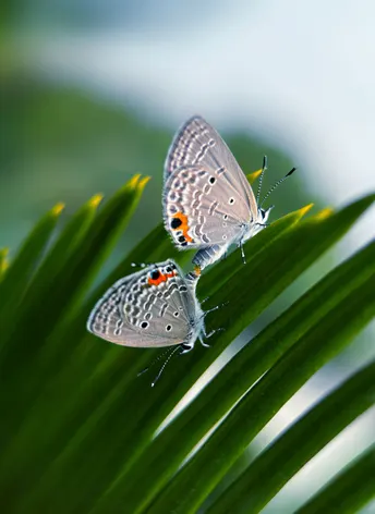 路过公园,居然发现了铁树上有灰蝶在飞舞,其中的两只正旁若无人地在交尾,为繁衍后代努力着。