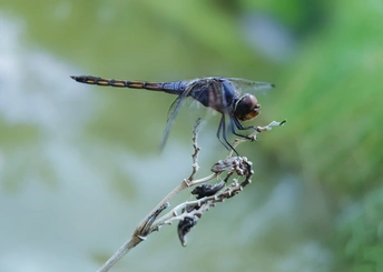 这只乐仙蜻蜓是雄蝶,身体呈淡蓝色,雌蝶胸部是黄褐色,腹部是黄色。