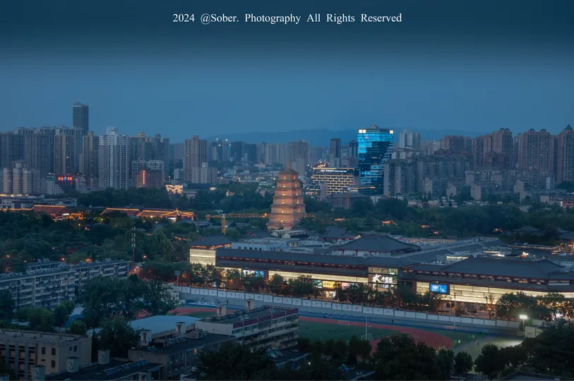 日与夜中蓝调最具氛围感,同时雁塔亮灯更加惊艳