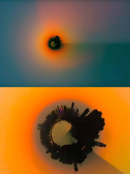 8月26日晚去武汉南湖拍晚霞,那天霞光异常漂亮,临时决定拍张全景,无奈霞光变化很快,最后图片成了现在这样,看图片的时候发现有点像青海海西蒙古族藏族自治州的“艾肯泉”,所以简单后期了一下也算是一个记录 这张图片以其独特的构图和色彩运用吸引了观众的注意。首先,从摄影类别来看,这张照片属于抽象摄影,利用光影和色彩形成了强烈的视觉冲击力。以直观的方式表现了自然光的变化,创造了一个富有层次感的空间,体现出摄影师对光影游戏的掌控能力。 在色彩方面,图像中明亮的中心与渐变的边缘形成强烈对比,带来了一种梦幻般的氛围。这种配色不仅引发视觉上的愉悦,也使观者产生进一步的心理联想。同时,抽象表现使得观众的情感共鸣更加主观化,容易引起不同人的不同解读。 光影的运用是这张照片的一大亮点,尤其是在明暗对比的切换上,非常成功,增强了整体的立体感。摄影师在选择拍摄角度时,表现出敏锐的观察力,使得光线的投射形成了有趣的形状,突出了中心主体。这种创新的角度让观众重新思考光与影的关系,增加了照片的深度和哲理化的思考。