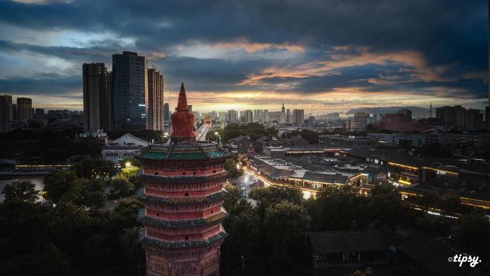 位于安阳市的天宁寺文峰塔已有千余年历史,由于其举世罕见的平台、莲座、辽式塔身、藏式塔刹而成为安阳人的精神地标,在夏日的夕阳余晖下,文峰塔与不远处的文峰桥遥相呼应。