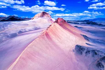 这座山因为含有多种矿物质,在阳光的照耀下呈现出五彩斑斓的颜色,尤其是粉红色,因此被称为“胭脂山”。
