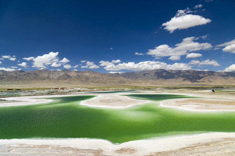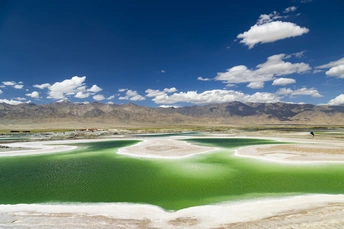 大柴旦翡翠湖,位于青海省海西蒙古族藏族自治州大柴旦行政区大柴旦镇境内,是大柴旦盐湖风貌,属硫酸镁亚型盐湖组成部分,是大柴旦盐湖面积15平方千米。盐湖由矿区资源开发后的卤化物(水)和矿物质(结晶物)组成