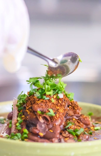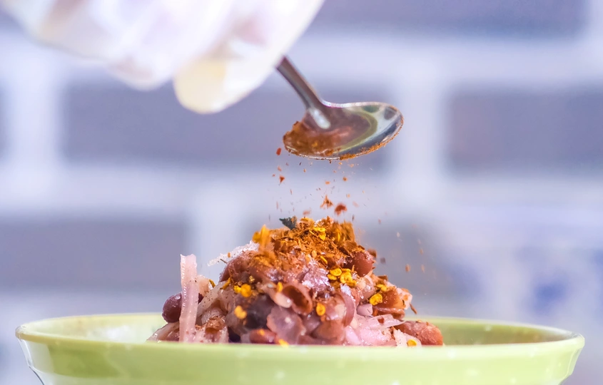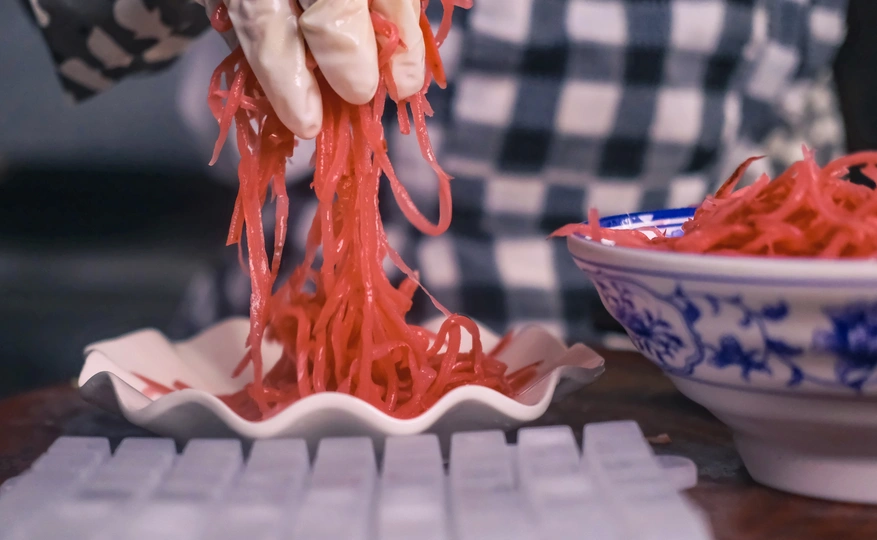 2024年9月8日,贵州省黔西南布依族苗族自治州望谟县县城,自制的辣椒粉拌酸萝卜丝经过腌制,撒上葱花、香菜和秘制辣椒面,香辣、爽脆之味重现脑海直冲顶门。