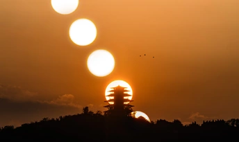 连续两天拍摄,反复调整最佳机位,最终拍下了最完美的日落轨迹。