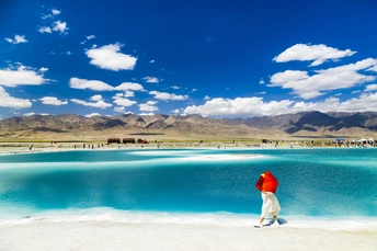 大柴旦翡翠湖,位于青海省海西蒙古族藏族自治州大柴旦行政区大柴旦镇境内,是大柴旦盐湖风貌,属硫酸镁亚型盐湖组成部分,是大柴旦盐湖面积15平方千米。盐湖由矿区资源开发后的卤化物(水)和矿物质(结晶物)组成