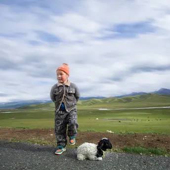 新疆巴音布鲁克牧羊小孩