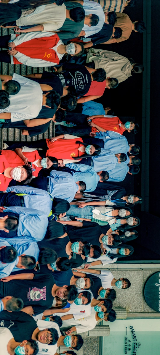 排队核酸中蜀黍制服的蓝,志愿者制服的红,形成强烈反差的对比
