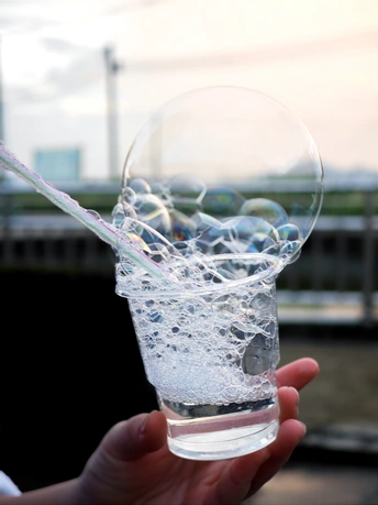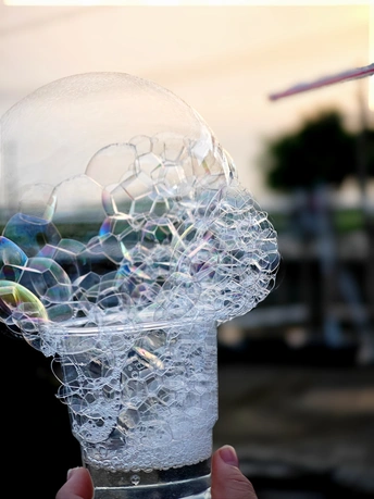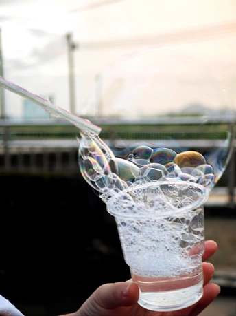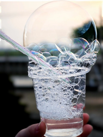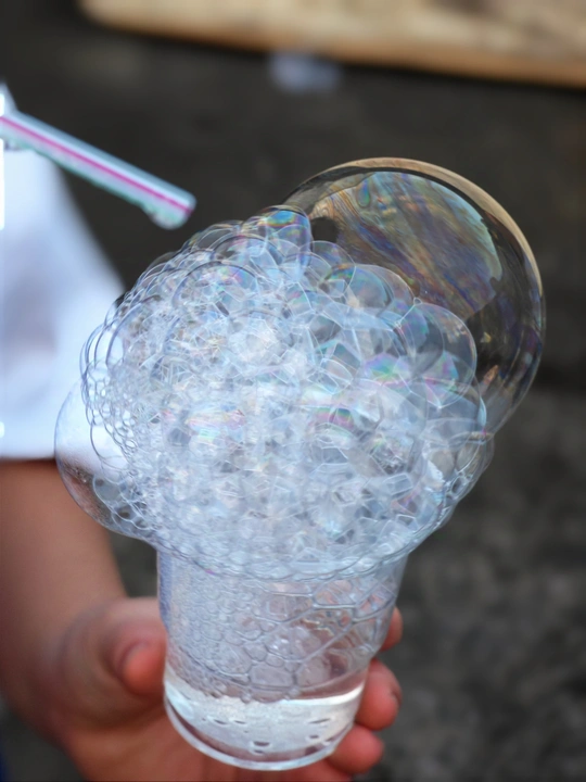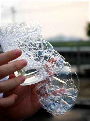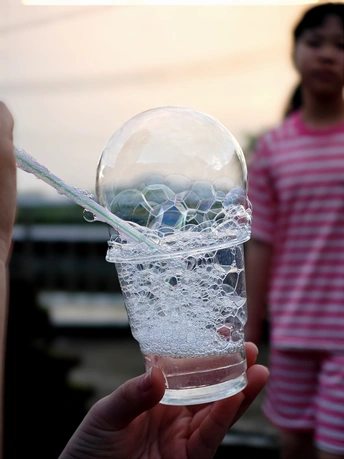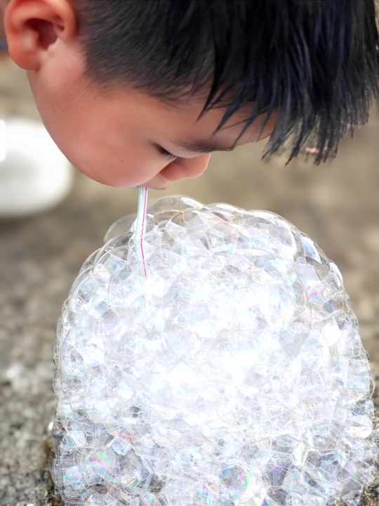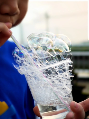 儿童乐趣无处不在,就地取材,用洗洁精兑水吹泡泡,相信大多数人都玩过😁